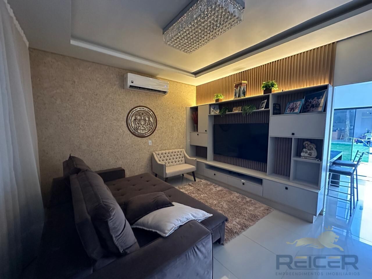 – Acabamento: Gesso, telha termoacústica, porcelanato, iluminação em led, quintal gramado.