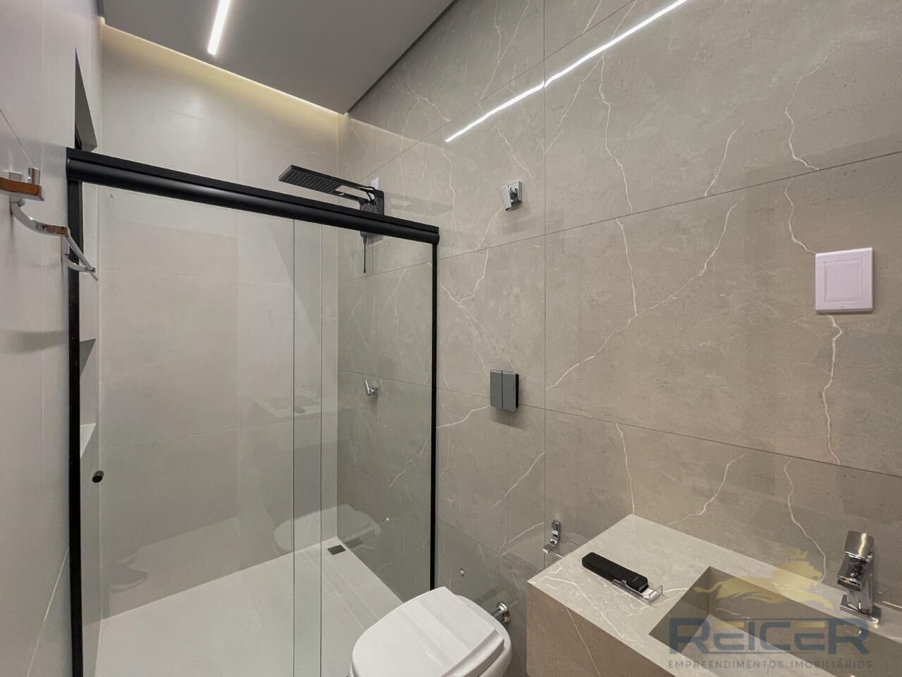 São 3 suítes (sendo uma master com closet com vista para a piscina), outra suíte com área intima. Banheiros de todas as suítes com metais 100% Docol, torneiras na linha Stillo, lift e metais na linha Flap e Top (alto padrão), sendo da suíte master com cuba dupla. Janelas com persianas automatizada em todos os quartos.